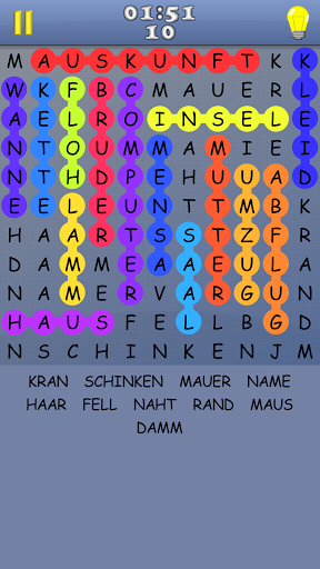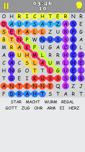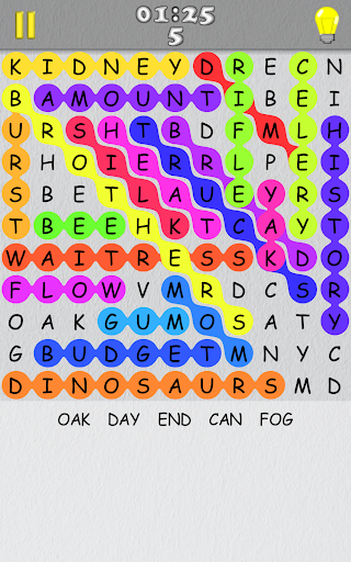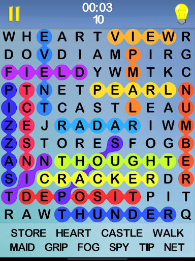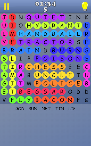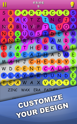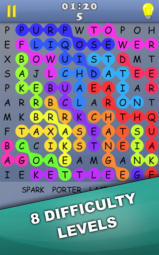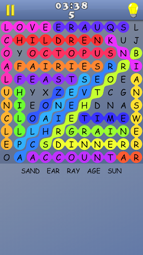 Tìm tất cả các từ ẩn bằng cách nối các chữ cái trong lưới. Vuốt trên màn hình để chọn từ. Sau khi tìm thấy, chúng sẽ bị gạch khỏi danh sách của bạn.