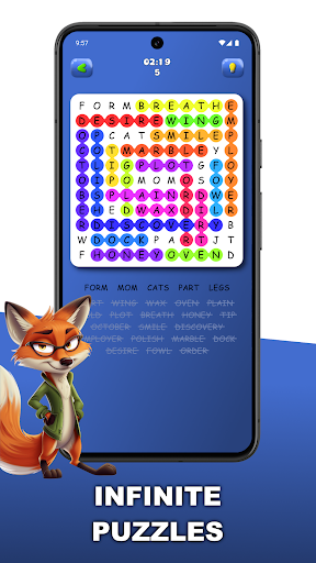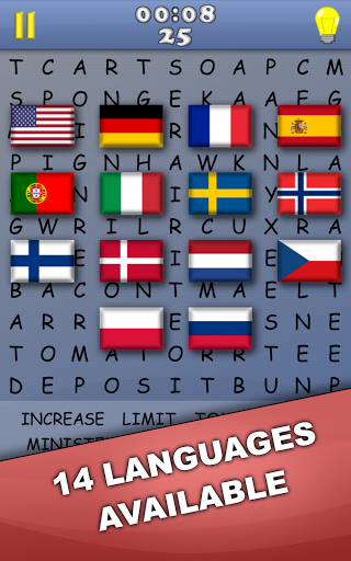 Chọn từ 8 cấp độ khó và nhiều hướng tìm kiếm khác nhau. Chơi có hoặc không có bộ đếm thời gian và cạnh tranh với bạn bè và người chơi trên toàn thế giới. Tất cả các câu đố được tạo tự động cho lối chơi vô tận. Bạn muốn cải thiện chính tả hoặc học một ngôn ngữ mới? Hãy chơi bằng một trong 13 ngôn ngữ được hỗ trợ!